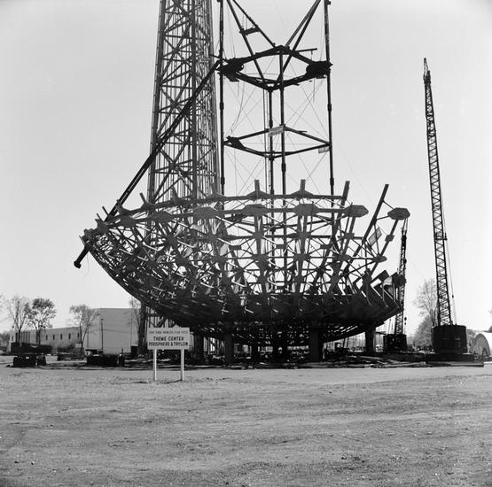 [Construction of the Trylon and Perisphere, New York World's Fair site.]