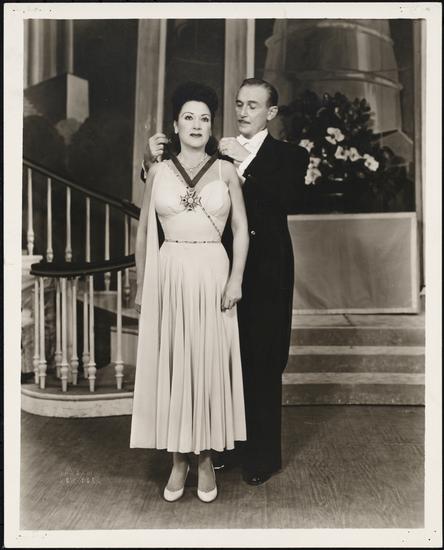 [Ethel Merman as Mrs. Sally Adams and Paul Lukas as Cosmo Constantine in "Call Me Madam".]