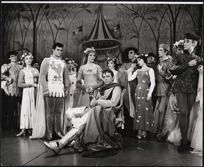 [Julie Andrews as Guenevere and Richard Burton as Arthur performing the namesake number in Act 1, Scene 1 of "Camelot".]