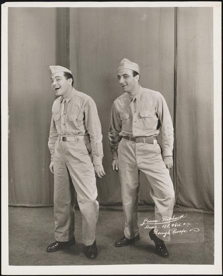 [Pvt. George Petrie and Pvt. Richard Kaplan in "Pack Up Your Troubles".]