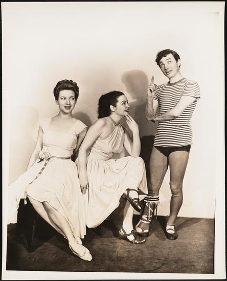 [Carol Stone as Celia, Alfred Drake as Orlando, and Helen Craig as Rosalind in "As You Like It".]