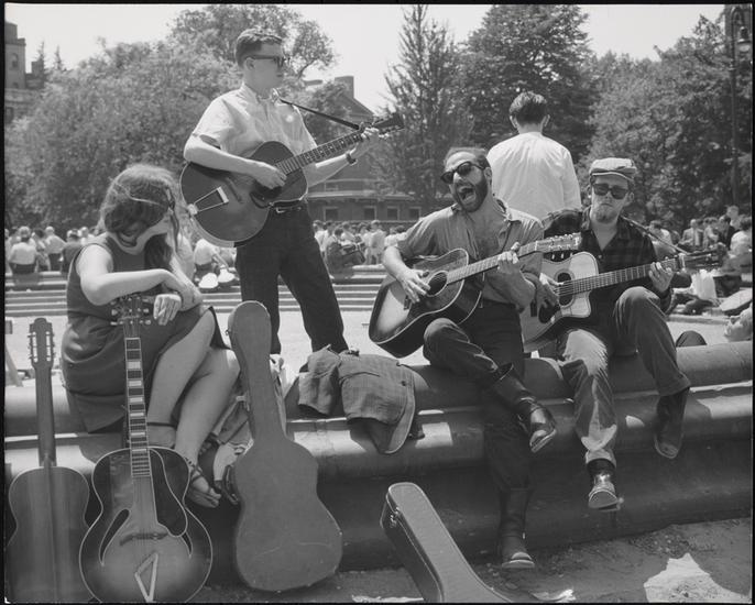 Sitting with guitarist fountain steps, Washington Square Park