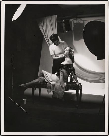 [Unidentified showgirl with photographer, possibly Edward Thayer Monroe.]