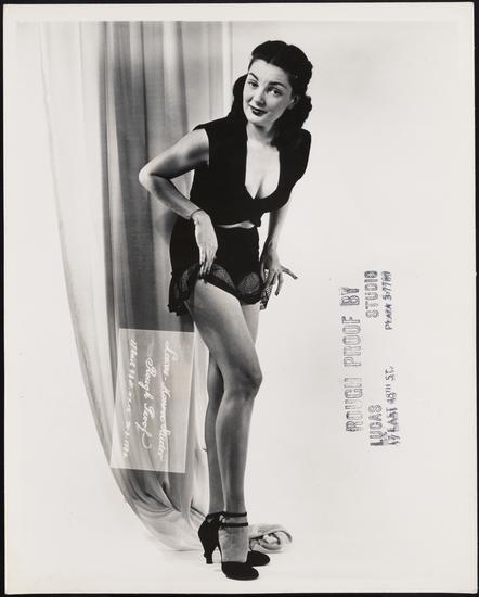 [Unidentified showgirl during a photo shoot for "As the Girls Go".]