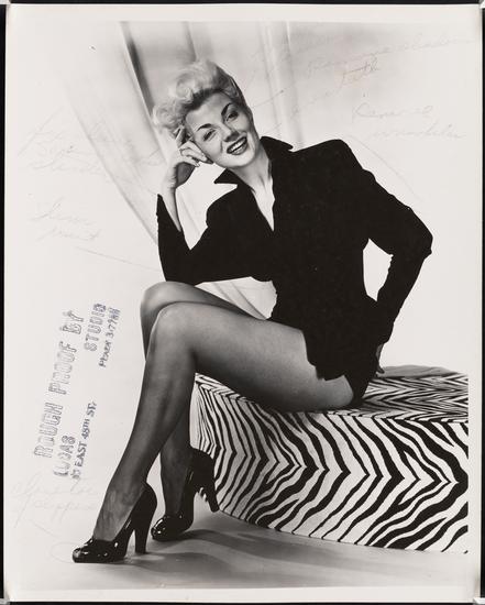 [Unidentified showgirl during a photo shoot for "As the Girls Go".]