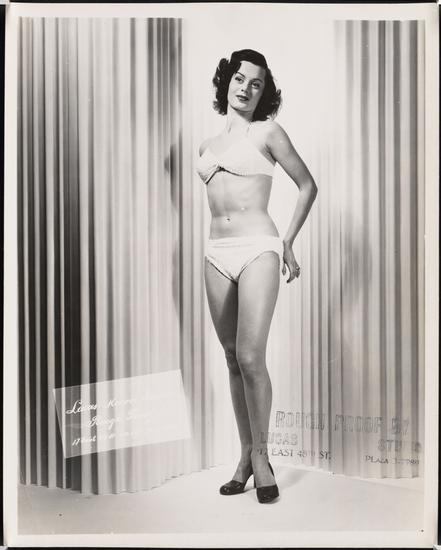 [Unidentified showgirl during a photo shoot for "As the Girls Go".]