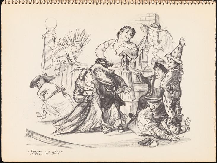 Don Freeman's Newsstand [Women ironing clothes, possibly in a theater setting.]