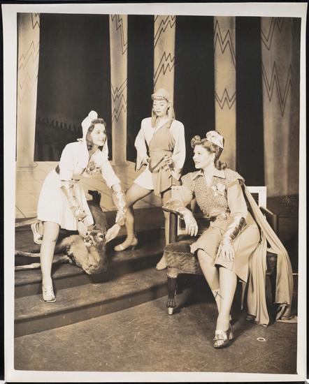 [Constance Moore as Antiope, Benay Venuta as Hippolyta, and Ray Bolger as Sapiens in "By Jupiter".]