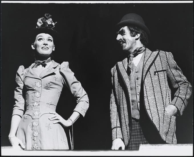 [Inga Swenson as Irene Adler and Fritz Weaver as Sherlock Holmes (in disguise) in "Baker Street".]