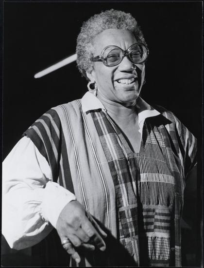 [Vinnette Carroll on the set of "But Never Jam Today".]