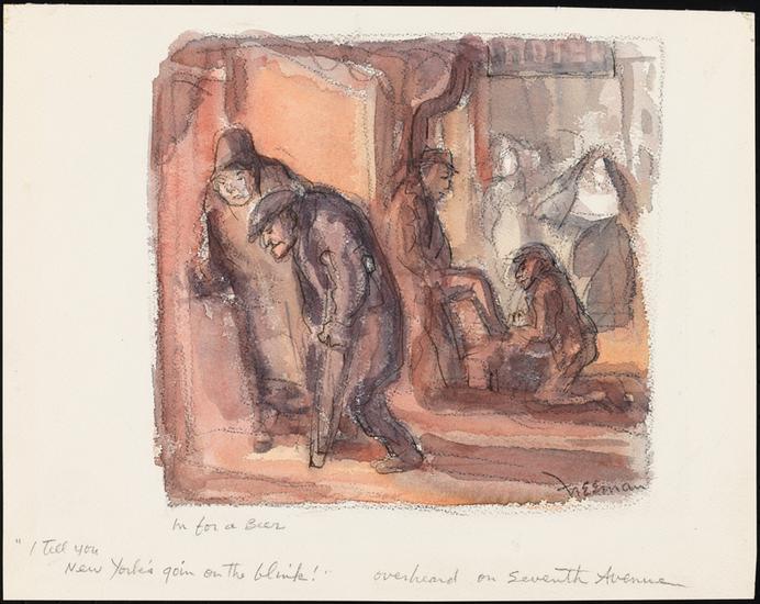 Here's Adolf Dehn sketching the Easter Parade on the corner of 51st Street and 5th Avenue as I saw him from a bus - the next page presents the drawing he made [Don Freeman's Newsstand.]