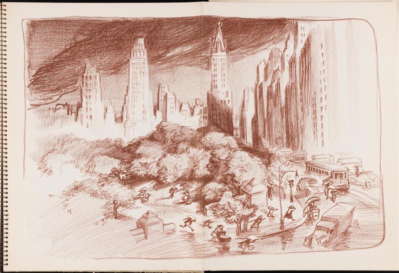 April Showers on Columbus Circle [Don Freeman's Newsstand.]