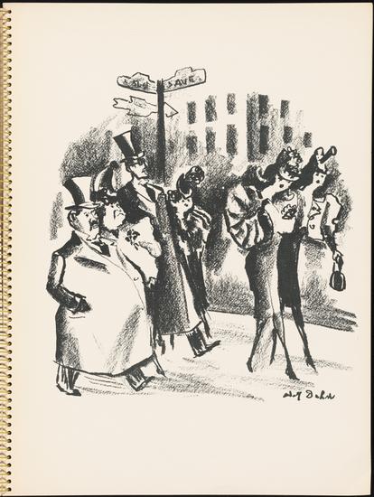 Here's Adolf Dehn sketching the Easter Parade on the corner of 51st Street and 5th Avenue as I saw him from a bus - the next page presents the drawing he made [Don Freeman's Newsstand.]