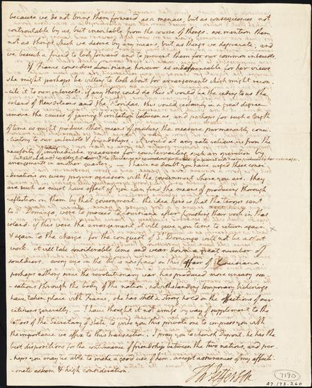 Letter from President Thomas Jefferson to Robert Livingston