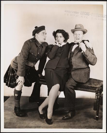 [Reginald Denny as Alfred J. Bandle, Lillian Bond as Frankie Marriott, and Bobby Clark as Wilmer Popday in "All Men Are Alike".]