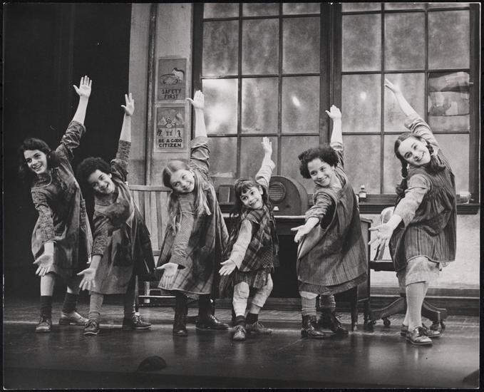 ["Annie" theater still during "You're Never Fully Dressed Without a Smile".]