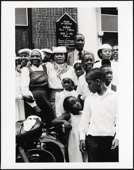 Among the last residents, [an] African-American boy standing in rubble, his "neighborhood," with abandoned buildings in the background.