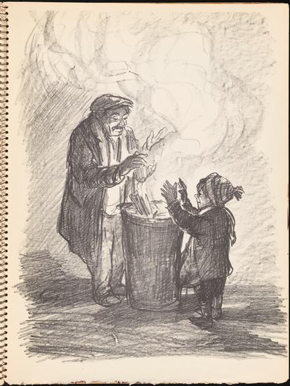 Don Freeman's Newsstand [Two men carrying shovels.]