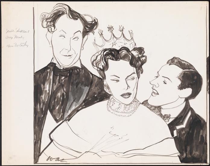 [Meg Mundy as Rosaline, Joseph Schildkraut as Don Adriano de Armado, Philip Bourneuf as Holofernes, and Nancy Marchand as Princess of France in "Love's Labour's Lost".]