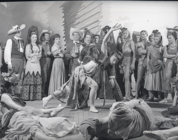 [Jane Lawrence as Donna Lucia D'Alvadorez and Ray Bolger as Charley Wykeham in "Where's Charley?".]