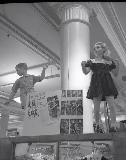 Macy's [Mannequins dressed in children's clothes surrounded by magazine advertisements from LOOK Magazine.]