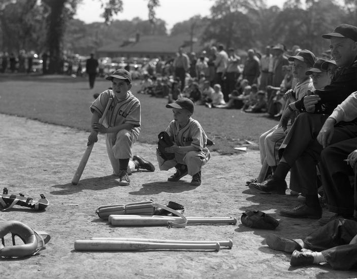 [Commissioner Grover Whalen watching the Golden Jubilee.]