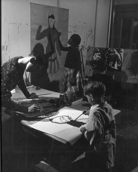 [Unidentified woman painting a portrait of Reginald Marsh.]