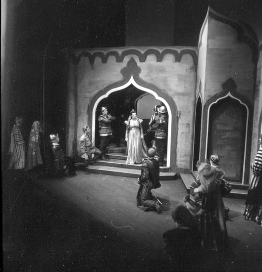 [Paul Robeson in the title role, Uta Hagen as Desdemona and Philip Huston as Lodovico in "Othello".]