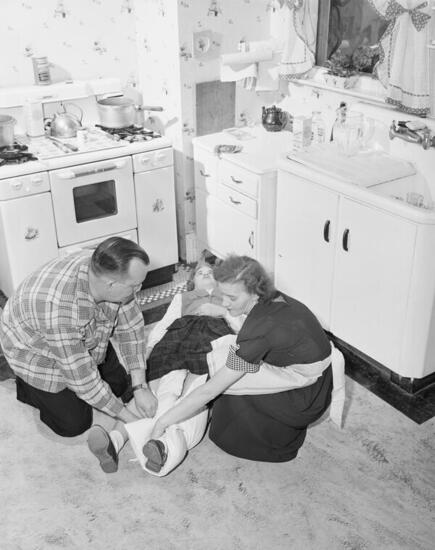 Civil Defense - Atomic Bomb First Aid [The Durham family in their residence at 4007 Glenwood Road.]