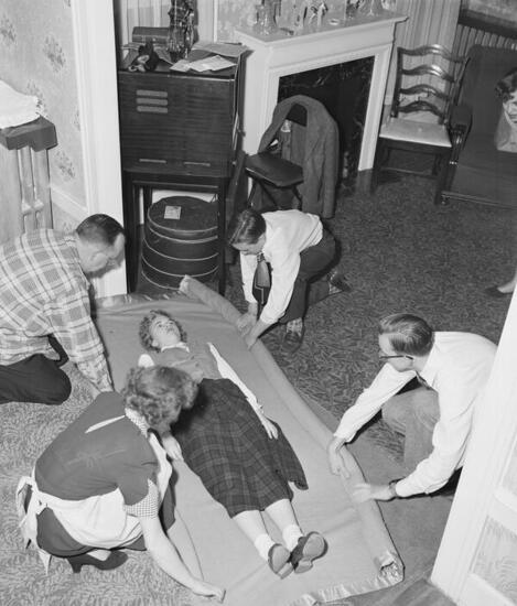 Civil Defense - Atomic Bomb First Aid [The Durham family in their residence at 4007 Glenwood Road.]