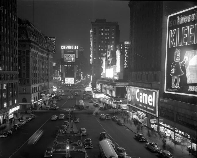 New York City, Times Square South from 46th Street. General view of "Whiteway" toward Times Building.
