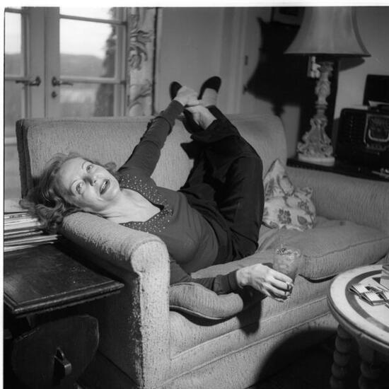 Tallulah Bankhead [Tallulah Bankhead entertaining at home.]