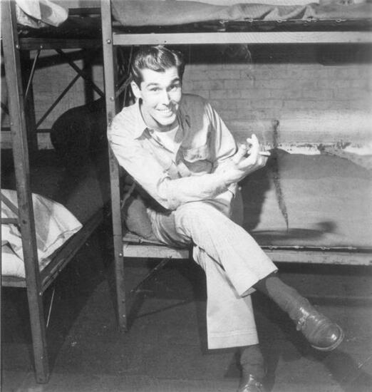[James Monks as Private Francis Marion and William Prince as Private Quizz West in "The Eve of St. Mark".]