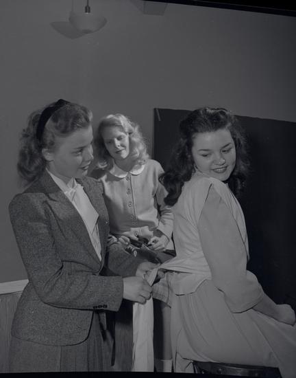 Gimbels Fashion Show [Models backstage and women in the audience.]