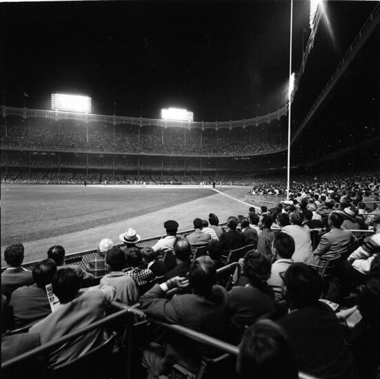 Yankee Stadium [Groundskeepers maintaining the baseball diamond.]