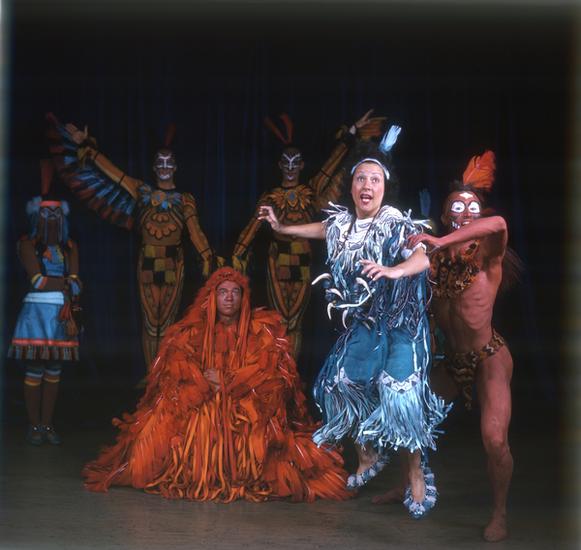 [Ethel Merman as Annie Oakley and Harry Bellaver as Chief Sitting Bull with dancers in "Annie Get Your Gun".]