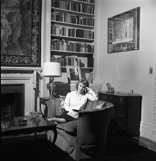 [Edwin Jerome as Senator Ellsworth Langdon and Barbara Bel Geddes as Genevra Langdon in "Deep Are the Roots".]
