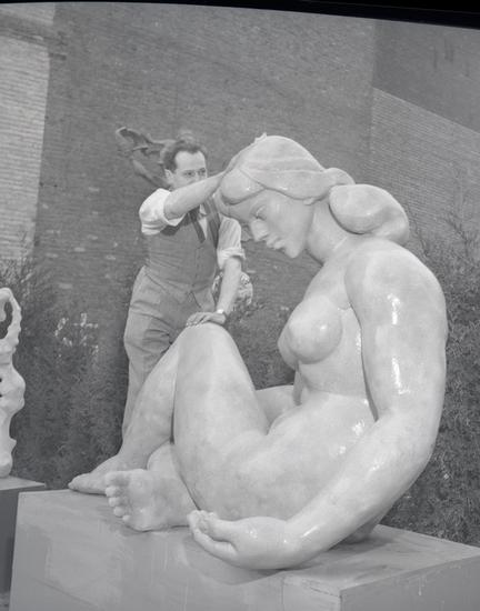 Pint-Size Sculptor with Big Ideas [Koren Der Harootian with his sculpture Prometheus and Vulture.]