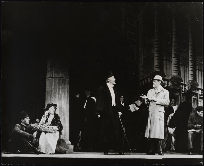 [Rex Harrison as Henry Higgins and Cheryl Kennedy as Eliza Doolittle in "My Fair Lady".]