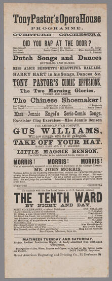 Tony Pastor's Opera House. Program for Monday evening, June 10, 1867
