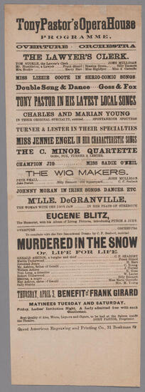 Bowery Opera House. Benefit of Frank Girard, Thursday, March 25, 1875