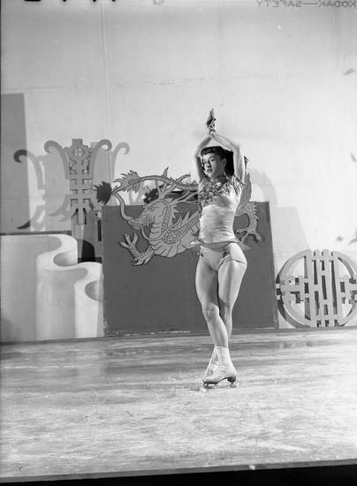 Beaux Arts Ball [Man, wearing makeup, drinking coffee at a costume party for members of the Architectural League of New York.]