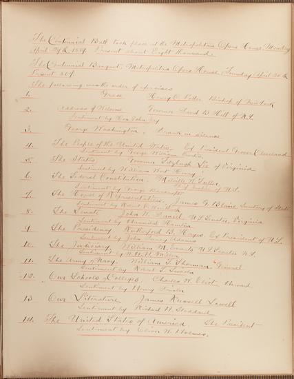 Centennial Celebration of the Inauguration of George Washington, First President of the United States, April 30, 1789