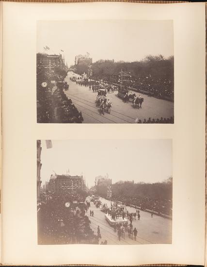 Military Parade, April 30th, 1889. Naval Detachement of 1000 boys. Photograph from top of 23rd Street Arch, looking down 5th Avenue [Washington's Centennial Parades.]