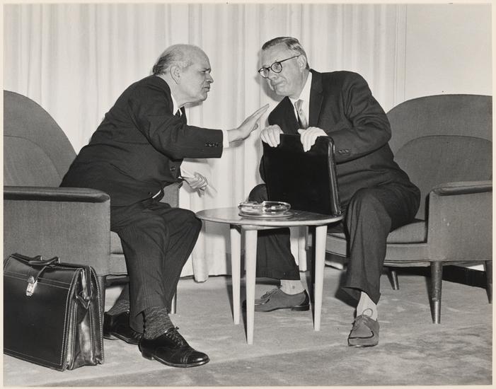 [Police tackle Barna Sarosky at Soviet UN delegation headquarters, during a protest against execution of Hungarian freedom fighters Imre Nagy and Pal Maleter.]