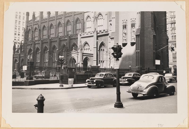 Both Sides of Broadway from Bowling Green to Worth Street [Trinity Church cemetery and the Trinity and U.S. Realty Buildings.]