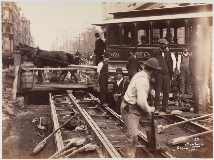 Barclay St. [Construction of the cable road on Broadway, 1891.]