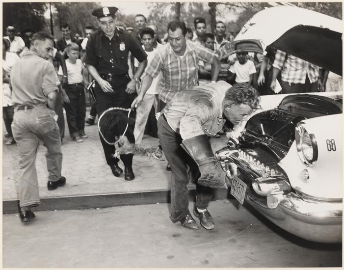 [Police tackle Barna Sarosky at Soviet UN delegation headquarters, during a protest against execution of Hungarian freedom fighters Imre Nagy and Pal Maleter.]