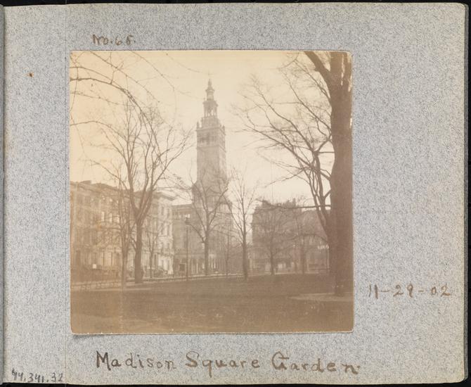 East 26th Street and Madison Avenue. Old Madison Square Garden. View from park