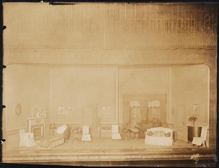 [Staging for the Act 1 set of the chateau drawing room in "The Beautiful Adventure".]